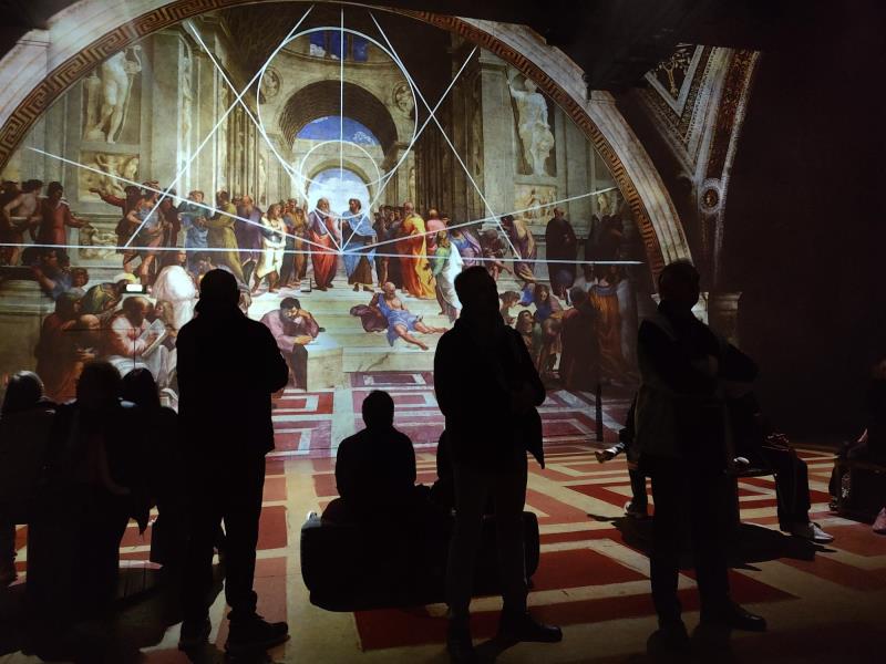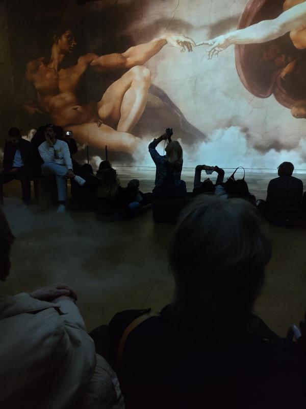 L'Atelier des Lumières est spécialisé dans l'expérience immersive, s'attaque cette fois à la "Renaissance". De Vinci, Raphaël, Michel-Ange. Trois génies visionnaires, trois univers complémentaires : la curiosité scientifique de Léonard, l'harmonie parfaite de Raphaël, la puissance sculpturale de Michel-Ange. Une plongée au cœur de leurs chefs-d’œuvre grâce à des technologies de pointe et une scénographie entièrement repensée : modélisations 3D, jumeaux numériques, jeux de fumées et lasers. Un spectacle inédit que les résidents ont grandement appréciés. Comme toujours nous sommes rentrés à la résidence Rabelais après un petit goûter, pour nous remettre de toutes ces merveilles visuelles.