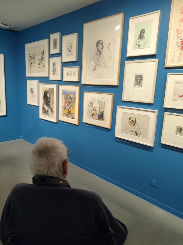 À la fois peintre, dessinateur et sculpteur, George Condo développe un univers singulier nourri par une culture visuelle prolifique qui parcourt l’histoire de l’art occidentale des maîtres anciens à aujourd’hui. Voici une brève présentation de l'auteur des œuvres que nous vu la semaine dernière au musée d'Art Moderne de Paris. Nous avions le choix également de visiter l'exposition permanente mais tout le monde avait envie de voir celle ci alors nous y sommes allés. Sans doute une des expo les plus complète à ce jour de cet artiste, il y avait des dizaines de tableaux, sculptures et dessins à voir et de divers styles. Les avis étaient partagés en fonction des époques certains préférant ses œuvres plus figuratives et d'autres ses périodes beaucoup plus abstraites. Il y en avait pour tous les goûts et tout le monde est rentré enchanté de cette visite. Nous avons pris notre goûter habituel à la sortie avant de rejoindre la résidence en fin d'après midi.